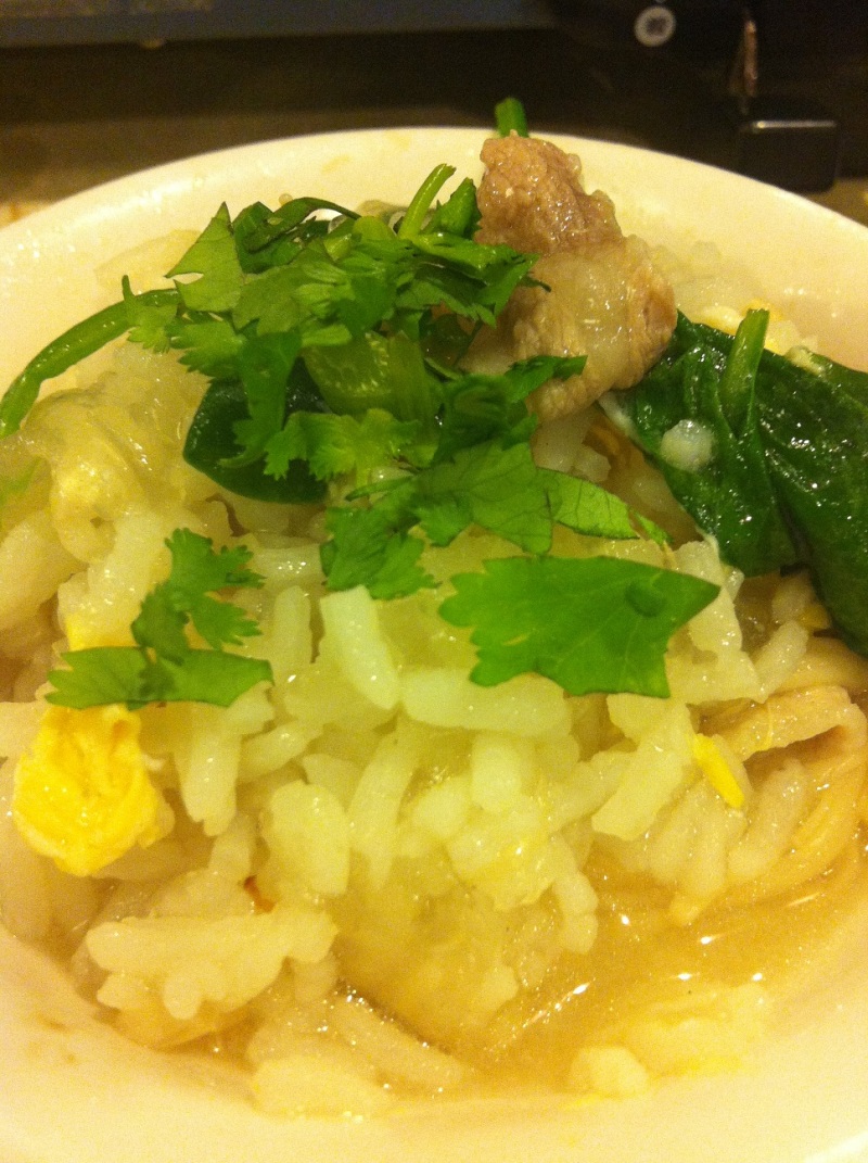 というわけで、最後に香菜をふりかけて雑炊完成です!