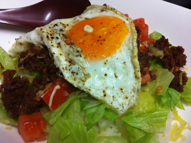 これ、沖縄に行ったときに初めて食べたタコライスお思い出して作られた一品。