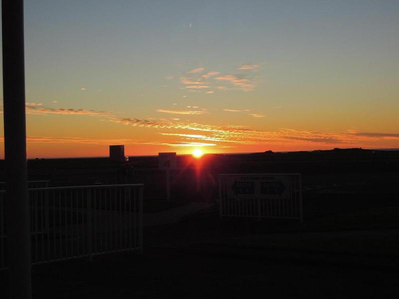 出発ロビーから見えた夕日。