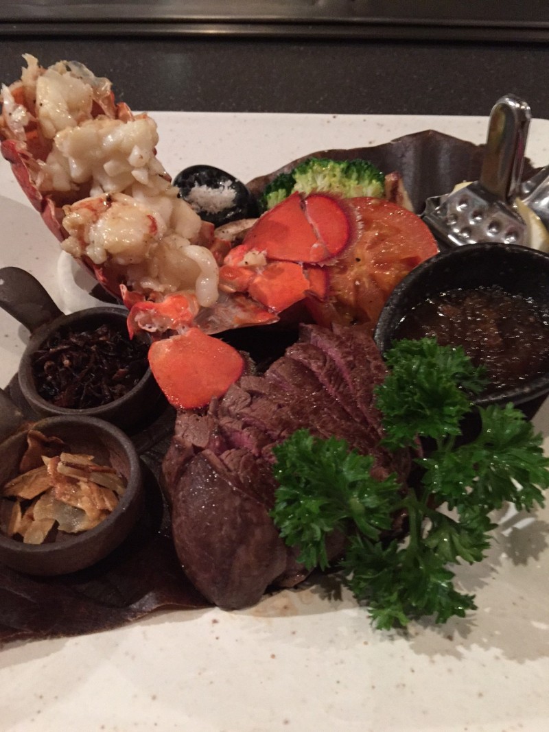 ちょっと豪華に、クレイフィッシュとビーフステーキのコンビネーションにしました。