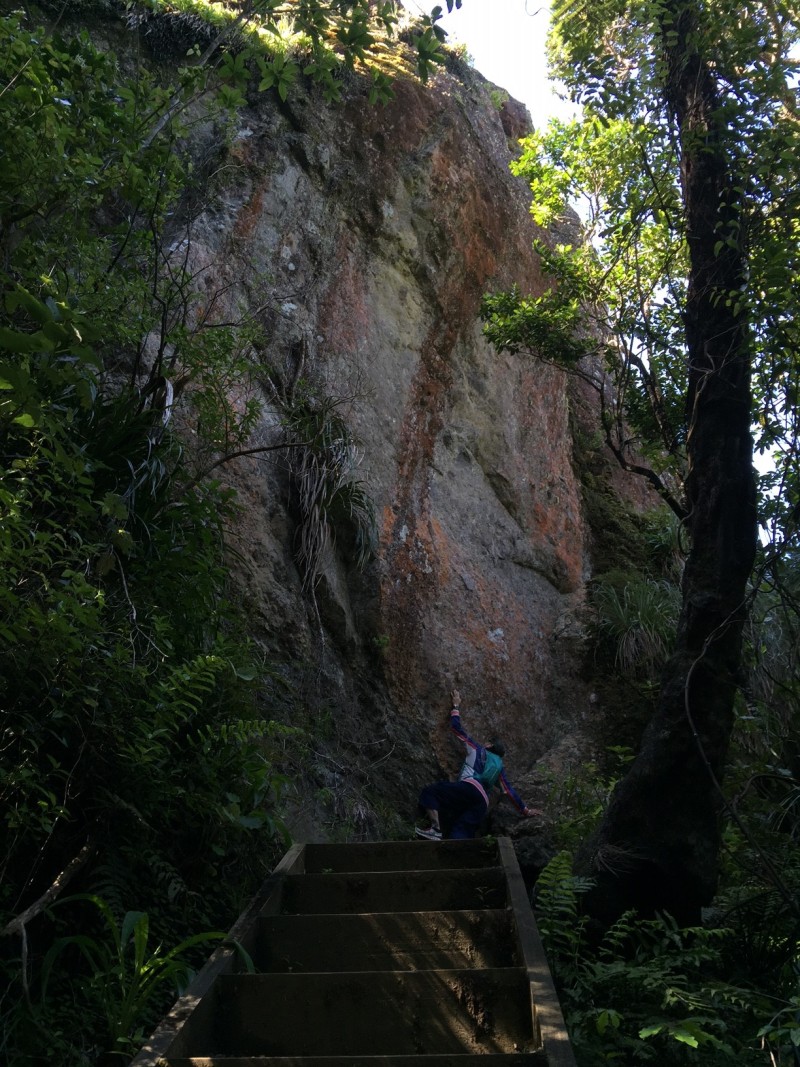 普通の山道ならいいんですが、もうとにかく、途中途中で急な階段が続くんですよ。